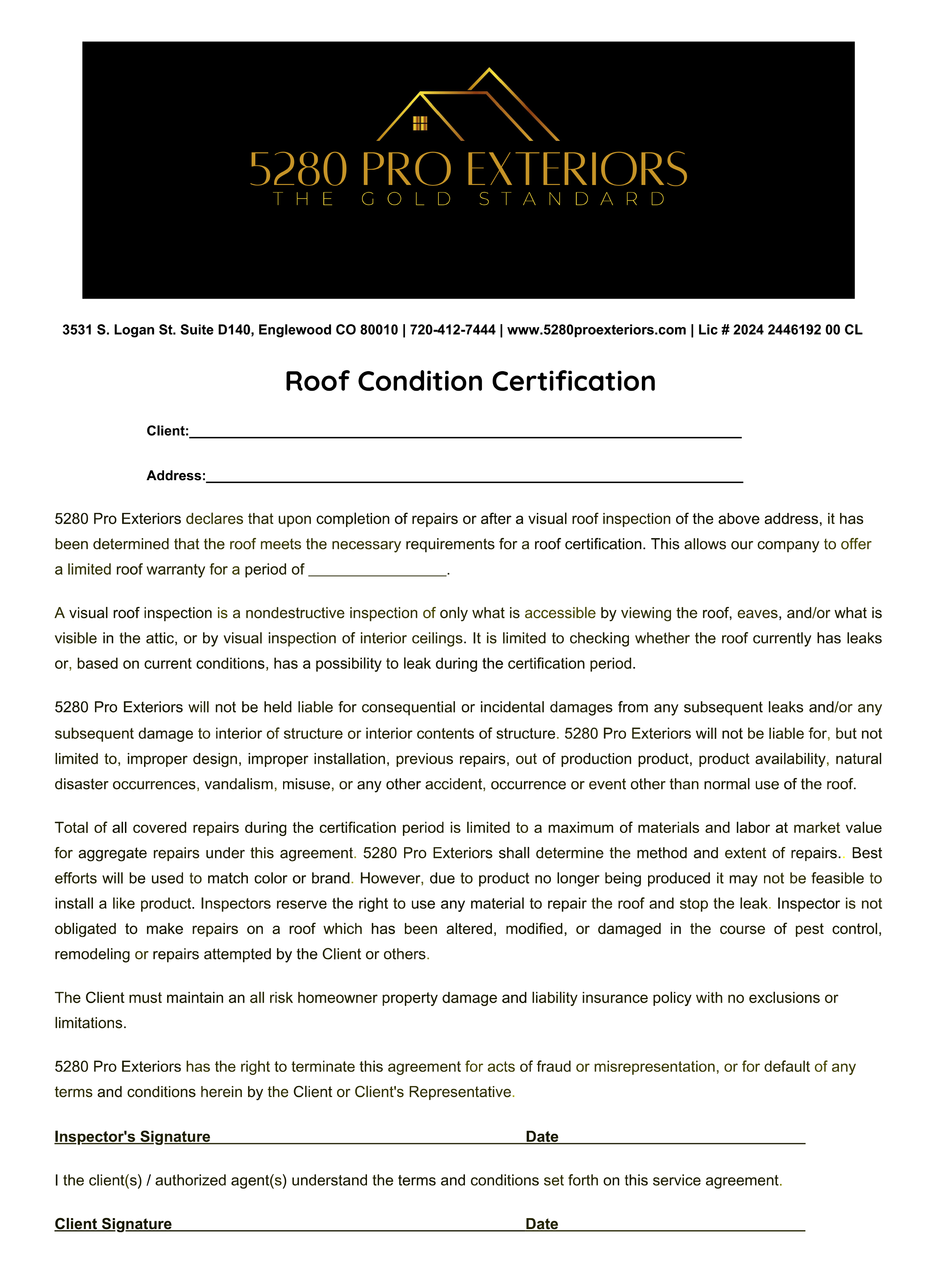 Roof Contition Certificate